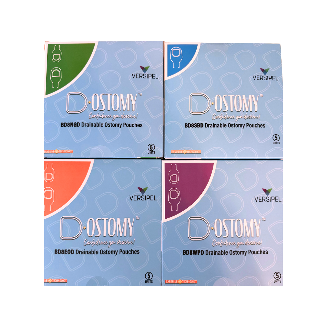 The D-Ostomy is a novel, patented, D-shaped ostomy designed to be placed near difficult anatomy (incisions, scars, drains, umbilicus, rolls, folds, second ostomies, etc.) without overlap. The barrier can be roated and the straight edge placed adjacent to any anatomical challenge. Because each client is different, our pouches come in all four cardinal directions. This allows the client to place the barrier in any orientation they require.
